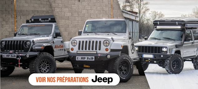 Découvrez nos équipements 4x4 sur des Jeep Wrangler et Cherokee.