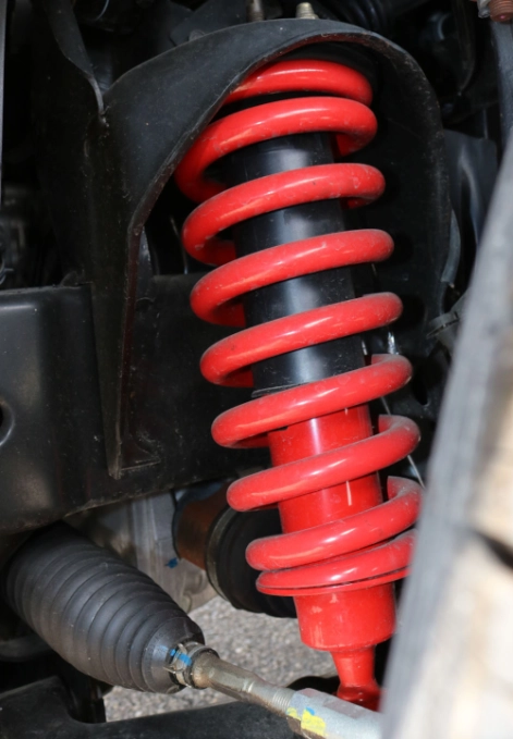 Le ressort à pour rôle de porter le véhicule, Il détermine la hauteur de caisse, supporte le poids du véhicule et absorbe une bonne partie des chocs lorsqu'un véhicule se déplace sur un terrain accidenté et va donc permettre le mouvement de la roue, son tarage sera donc déterminé selon la charge qu’il aura à porter.