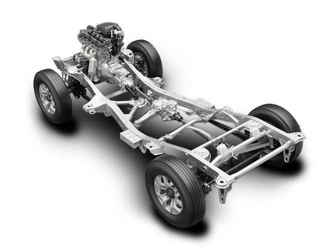 - Roues en 225/95R16 sur jantes en acier 6x16 ou en 265/70R16 sur jantes en aluminium 7x16 avec extensions d'ailes noires.*