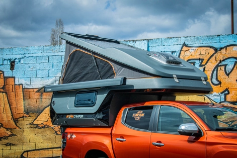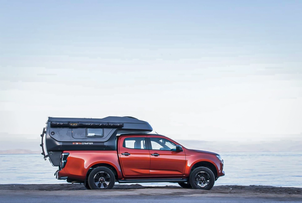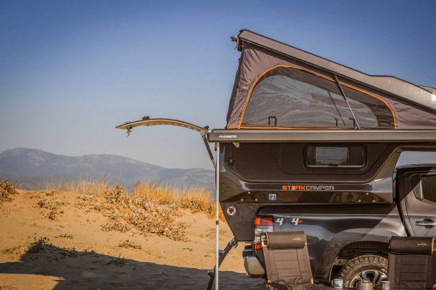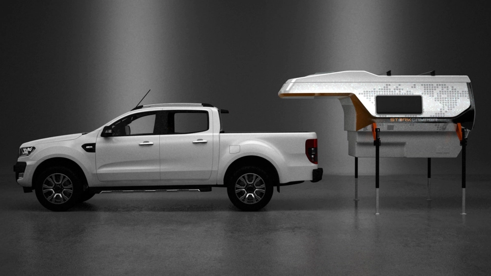 La cellule Stork Camper est conçue avec un design et des lignes aérodynamiques qui s’intègrent parfaitement à l’esthétique de votre pick up.