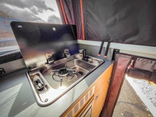 - Cuisine intérieure 1 feux gaz + évier (Évier de cuisinière combiné Can FL1323 / Robinet pliant Arona)