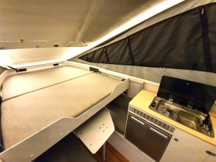 Vous pourrez transformer la table intérieure en cuisine d'extérieur, ou la transformer en lit. Exploitez chaque élément à votre guise et profitez d'une liberté sans limites.