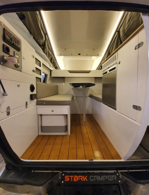 Nous repoussons les limites de la vie en camping avec la cellule Stork Camper et créons un espace confortable à votre disposition.