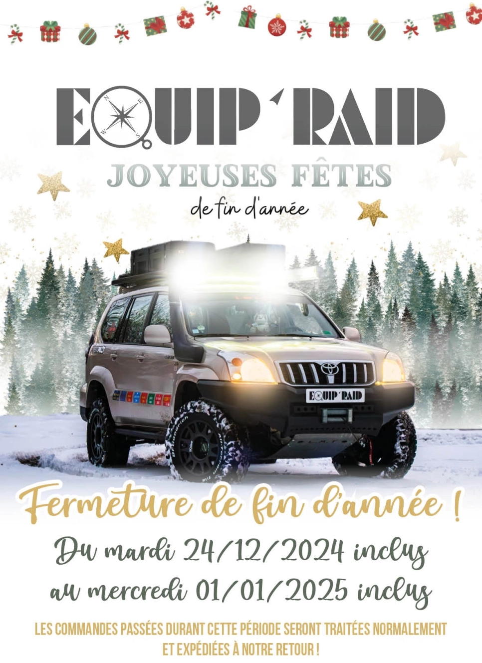 EQUIP'RAID est FERMÉ du 24/12/2024 au 01/01/2025 INCLUS !