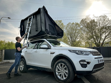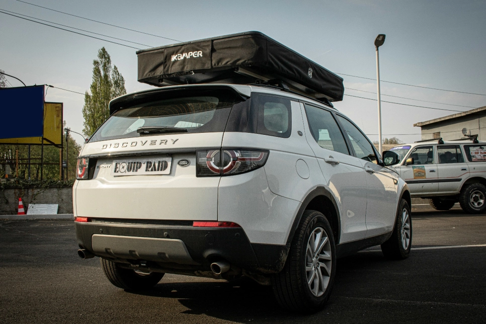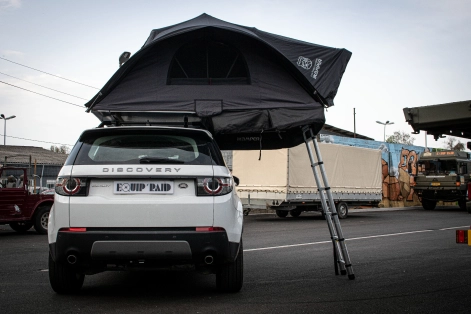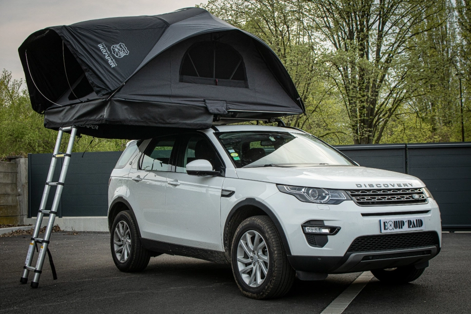 Ce Land Rover Rover Discovery Sport est passé chez Equip'Raid afin de l'équiper d'une tente de toit.