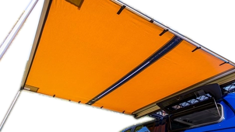 Facile à monter et d'utilisation agréable, cet auvent retractable s'installe sur le côté de la plupart des galeries ou barres de toit et se range dans un sac PVC.