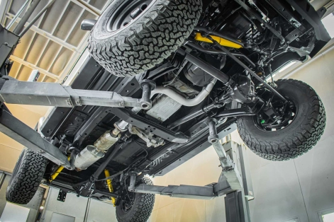 Traitement par sablage de la corrosion de surface (non perforante) des parties extérieures du châssis et des passages des roues, ainsi que la mise en peinture par deux couches de peinture époxy anti-corrosion industriel et de d'une couche de revêtement de protection Raptor noir. Il est possible d'ajouter des parties supplémentaires à traiter comme la benne, caisse ou encore d'autres accessoires.