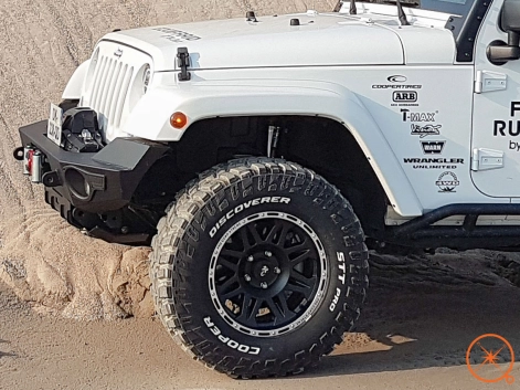 Le support peut acceuillir un pneu jusqu'à 37". Il s'installe sur les fixations d'origine, aucun perçage ou modifications ne sont à prévoir.