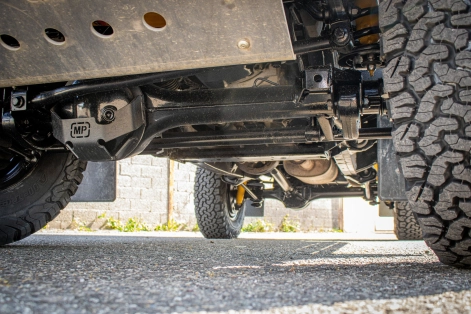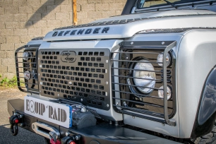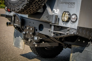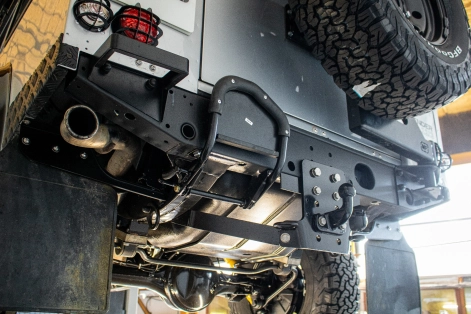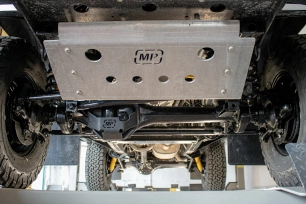 Les accessoires pour ce Land Rover Defender comme le blindage de protéction, le pare-chocs avant, les coquilles de pont ou encore le porte-roue de secours sont de la marque MP Offroad, contactez-nous pour en savoir plus.
