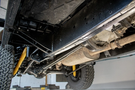 Traitement par sablage de la corrosion de surface (non perforante) des parties extérieures du châssis et des passages des roues, ainsi que la mise en peinture par deux couches de peinture époxy anti-corrosion industriel et de d'une couche de revêtement de protection Raptor noir. Il est possible d'ajouter des parties supplémentaires à traiter comme la benne, caisse ou encore d'autres accessoires.