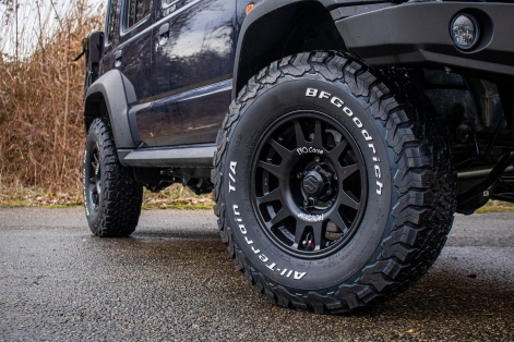 Les jantes Dakar Zero sont directement issue de l'évolution des jantes compétition de la marque itlienne. À la fois robustes, équipées d'une technologie qui limite le risque de déjantage même à très basse pression, elles sont également élégantes et donnent une touche supplémentaire de baroudeur extrême à votre Jimny. Les pneus BF Goodrich KO2 sont, quant à eux, une référence reconnue chez les aventuriers en 4x4. Ils sont un parfait compromis pour un usage mixte.