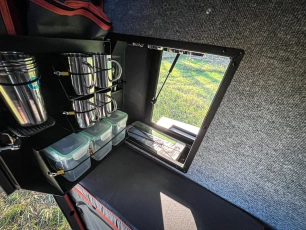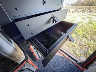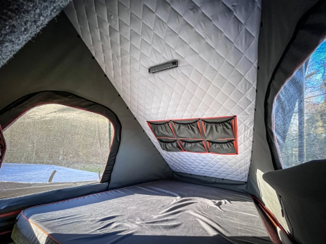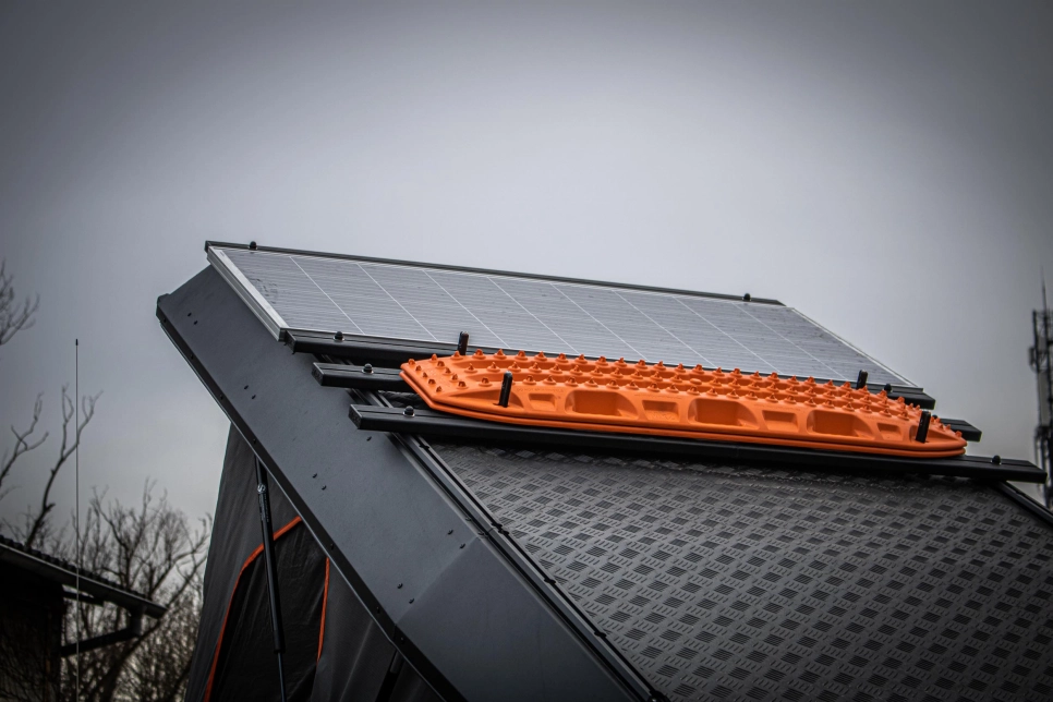 L'accès à la cabine s'effectue par l'intermédiaire de la porte arrière qui s’ouvre vers le haut et d'une échelle arrière rabattable. La porte arrière est équipée de poches zippées. Une moustiquaire est disponible pour l'entrée.
