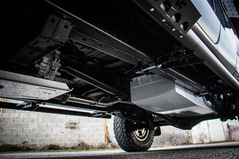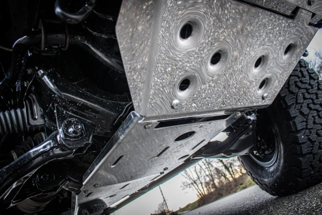 Traitement par sablage de la corrosion de surface (non perforante) des parties extérieures du châssis et des passages des roues, ainsi que la mise en peinture par deux couches de peinture époxy anti-corrosion industriel et de d'une couche de revêtement de protection Raptor noir. Il est possible d'ajouter des parties supplémentaires à traiter comme la benne, caisse ou encore d'autres accessoires.