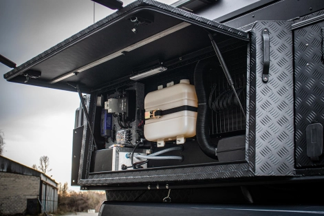 La longueur de la cabine est de 2,00 m sans attaches arrière et de 2.77m de longueur supérieur. La largeur est de 1,85 m. La hauteur totale est de 1,41 m. La cabine est équipée de feux arrière à LED, car la cabine dépasse à l'arrière sur la zone de chargement et couvre l'éclairage du véhicule sur le côté.