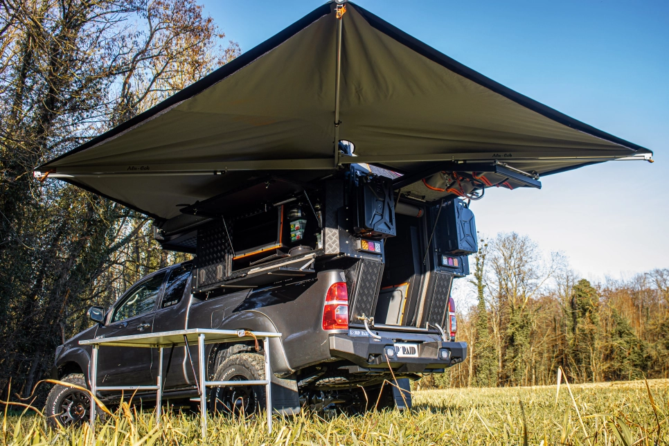 Le Khaya Camper est une nouvelle cellule démontable, conçue pour s’adapter au benne de la plus part des pickup. La cabine Khaya possède déjà un équipement de base important dont un auvent avec ouverture à 270° autoporté. Elle peut être livrée avec d’autres équipements et options. Elle comporte de nombreux espaces de stockages.