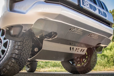 Protection en aluminium 6mm pour Land Cruiser 150/155. Elle se monte en complément de la protection avant BLAV50A sans avoir à démonter cette dernière pour l’installation. Pas de modification du véhicule.