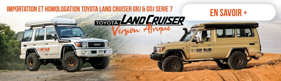 Préparation d'un GRJ78 avec les équipements suivants : toit relevable Alu-Cab, kit suspension Terrain Tamer, jantes Evo Corse, ...