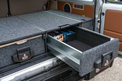 ARB propose des aménagement de tiroirs personnalisables avec différentes longueurs et hauteurs possibles ainsi que divers accessoires comme le plateau coulissant ou la tablette metallique pour tiroir coulissant. Les kits de finitions spécifiques au véhicule assurent une esthétique parfaite et offre des espaces de rangements supplémentaires de chaque côté et contre les sièges arrières. De cette manière vous pouvez camoufler vos équipements techniques tout en y ayant accès facilement et rapidement grace à des trappes prévues à cet effet.