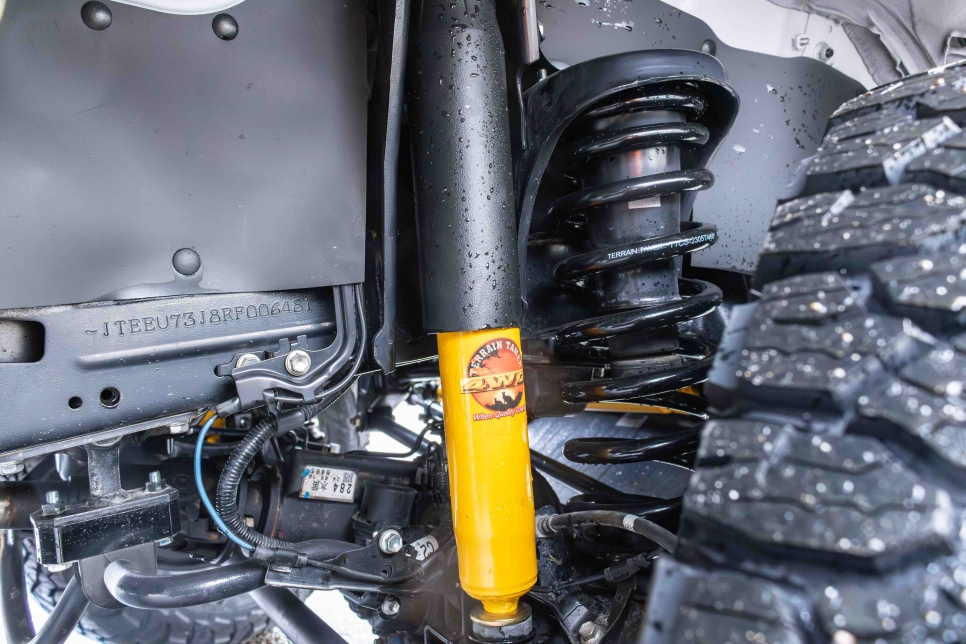 Pour franchir tous les obstacles que la nature va dresser sur son chemin, le kit suspension Terrain Tamer avec amortisseurs TGS et lames paraboliques sera une arme supplémentaire.