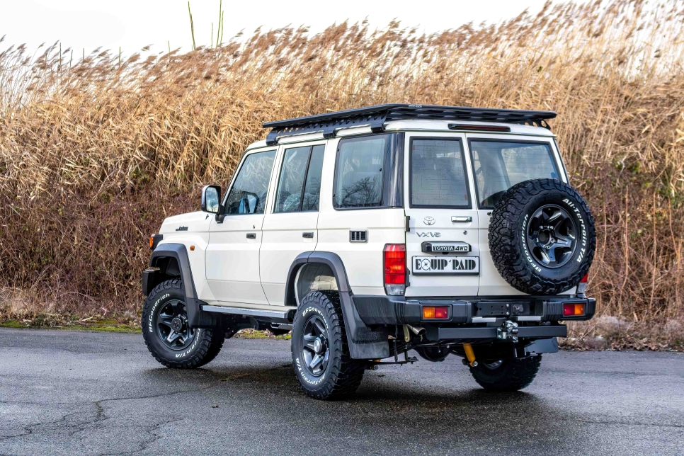 A mi-chemin entre rusticité et modernité, il dispose d'une boite manuelle à 5 rapports, de moyeux débrayables, d'un différentiel avant/arrière, d'un snorkel et d'un d'un treuil électrique d'origine Toyota 4.5T.