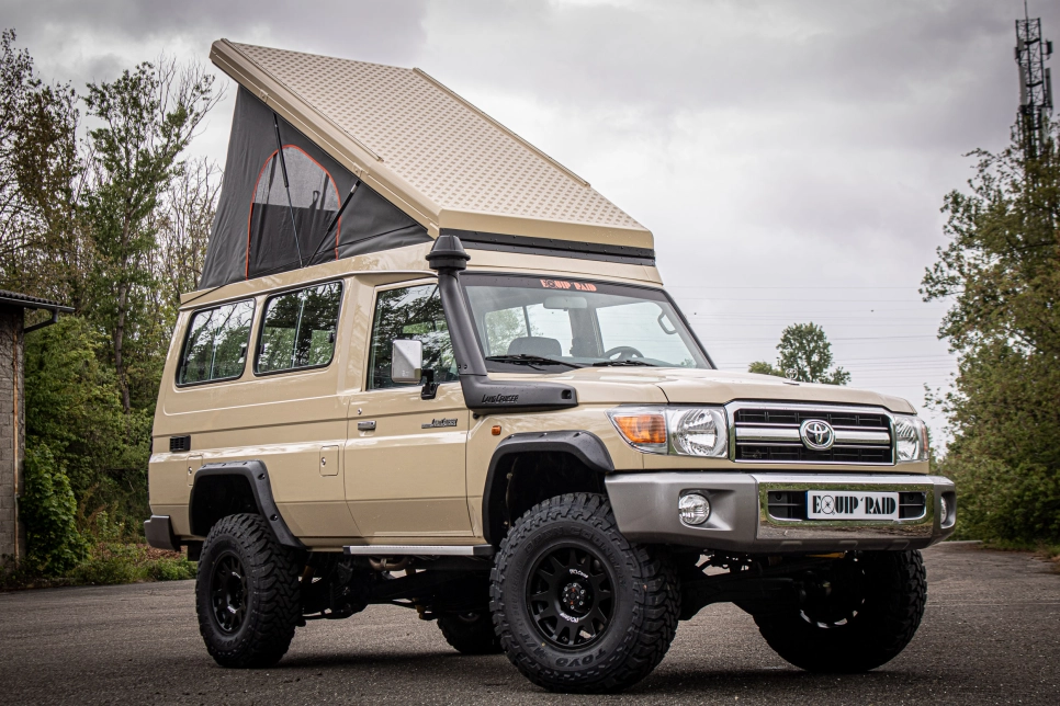 Ce Toyota Land Cruiser 78 est à présent équipé par Equip'Raid pour suivre son heureux propriétaire dans tutes ses aventures. Que ce soit pour un bivouac en pleine montagne, une partie d epêche endiablée ou pour partir à la chasse, il est en effet maintent possible de dormir confortablement à l'intérieur du véhicule pour être sur place aux aurores sans gêner la faune locale..