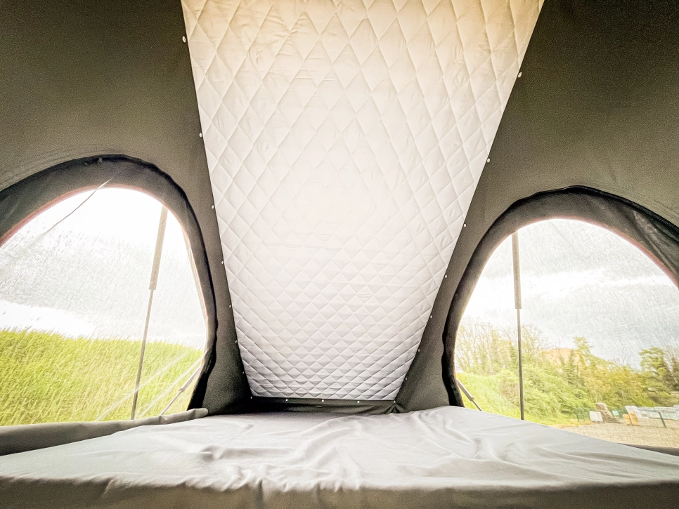 Le couchage est confortable dans ce toit relevable Hercules ALU-CAB, avec un matelas en mousse haute densité de 75mm. Des éclairages Leds à l'avant, au centre et à l'arrière, ainsi que deux liseuses dans la partie couchage, vous permettent de profiter pleinement de votre espace de vie.