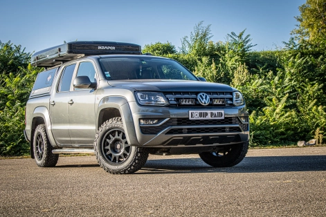 Ce véhicule est équipé de jantes Evo Corse, de feux LAZER, d'un auvent et des tiroirs ARB ainsi qu'une tente de toit iKamper...