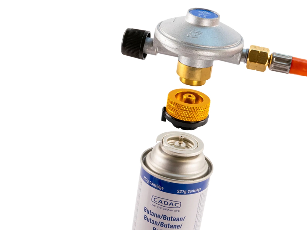 Cet adaptateur léger et facile à transporter permet de convertir une cartouche de gaz avec un raccord à baïonnette en un raccord fileté EN417. Il est doté d'une fonction de fermeture automatique pour éviter les fuites de gaz et est compatible avec divers détendeurs de gaz CADAC.