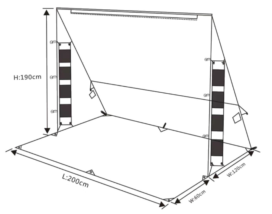 Comprend des haubans et des poches (avec trou de drainage) cousues pour ne pas les perdre une fois ramassées.