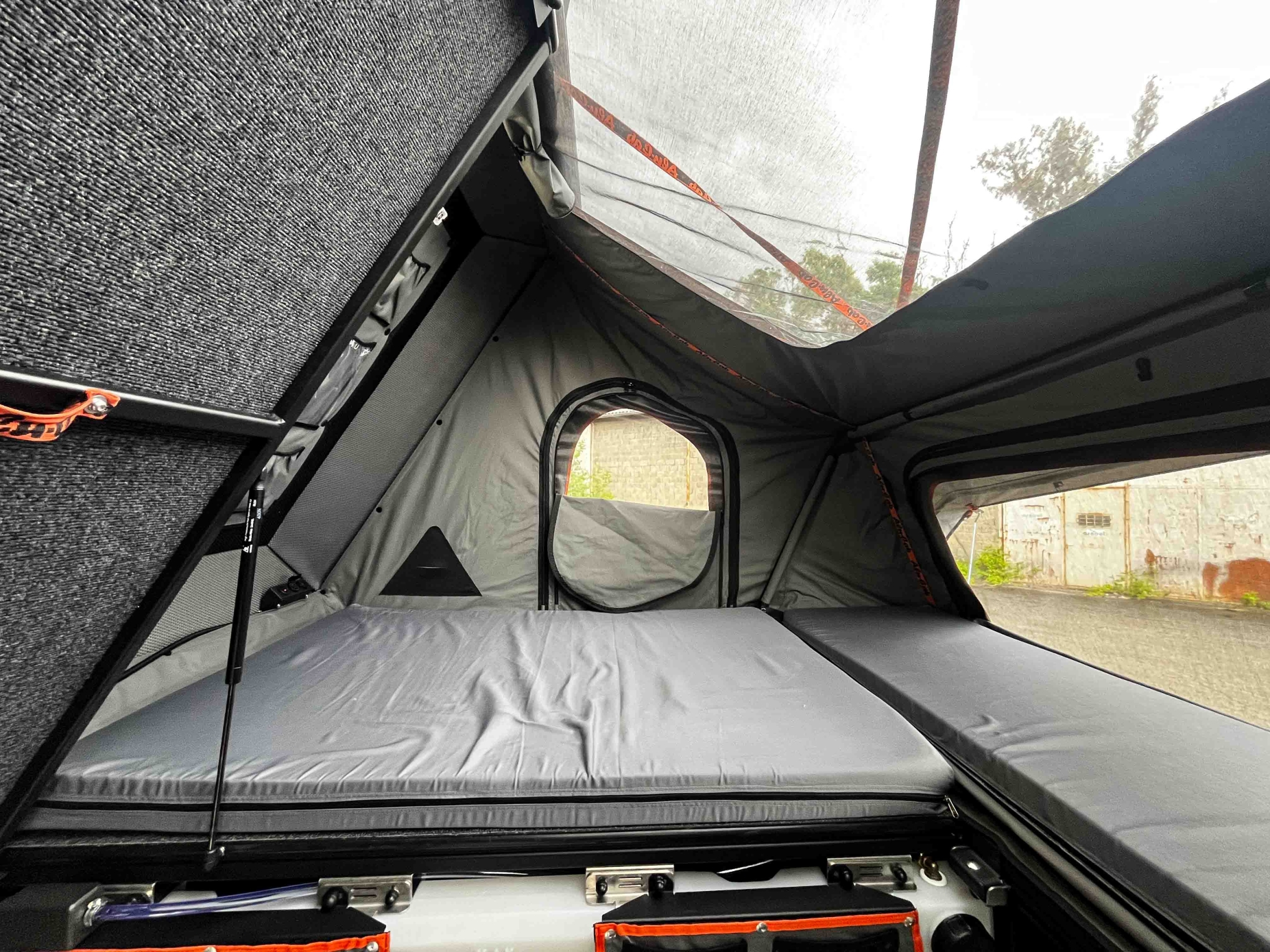 Le ModCap Family est la version conçue pour les familles ou les voyageurs souhaitant un couchage généreux et tout confort. Facile d’accès grâce au passage intérieur, il transforme votre pick-up en véritable abri d’expédition, avec une tente rigide intégrée et un volume habitable utilisable debout.