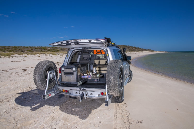 - un tiroir avec couvercle sur glissière : ce tiroir donne un grand espace de stockage et la possibilité de monter un réfrigérateur sur son couvercle, qui pourra être tiré dans et hors du votre véhicule. Contrairement aux autres produits de ce type c'est le seul à avoir une surface complètement plate qui fait que la surface de chargement est optimale si vous n'utilisez pas de réfrigérateur. Dimensions : 1045 x 535 x 280 mm