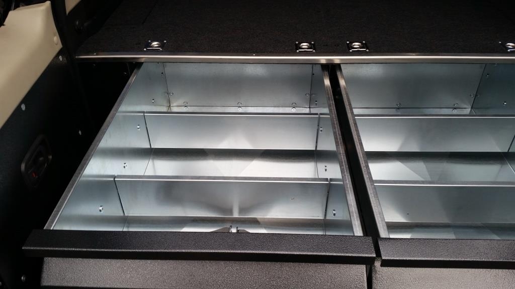 Possibilité également d'intégré un frigo tiroir de type Waeco en option. (dimension maximale de l'emplacement L 700 mm x l 450 mm x H 410 mm)