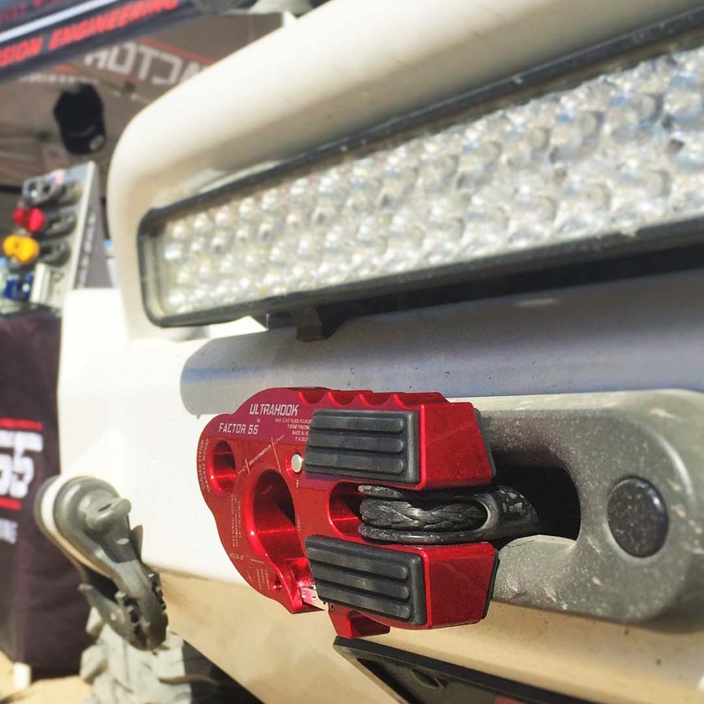 L'UltraHook vient remplacer le crochet du treuil. Il est fabriqué en aluminium 6061 et est donc très résistant. Il est usiné dans la masse. Disponible en plusieurs couleurs il est aussi esthétique. Il se fixe simplement sur l’anneau de la corde grâce à une goupille en titane. Il dispose d’une embase en caoutchouc pour protéger l’écubier ou les rouleaux.