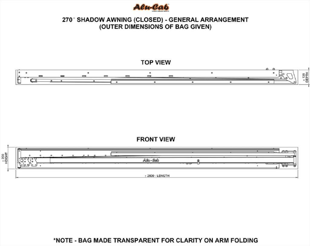 Auvent Alu-Cab 270° Autoporté – Ouverture à droite – 2,60 m