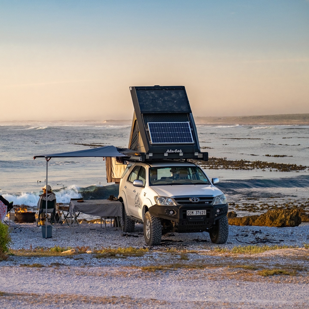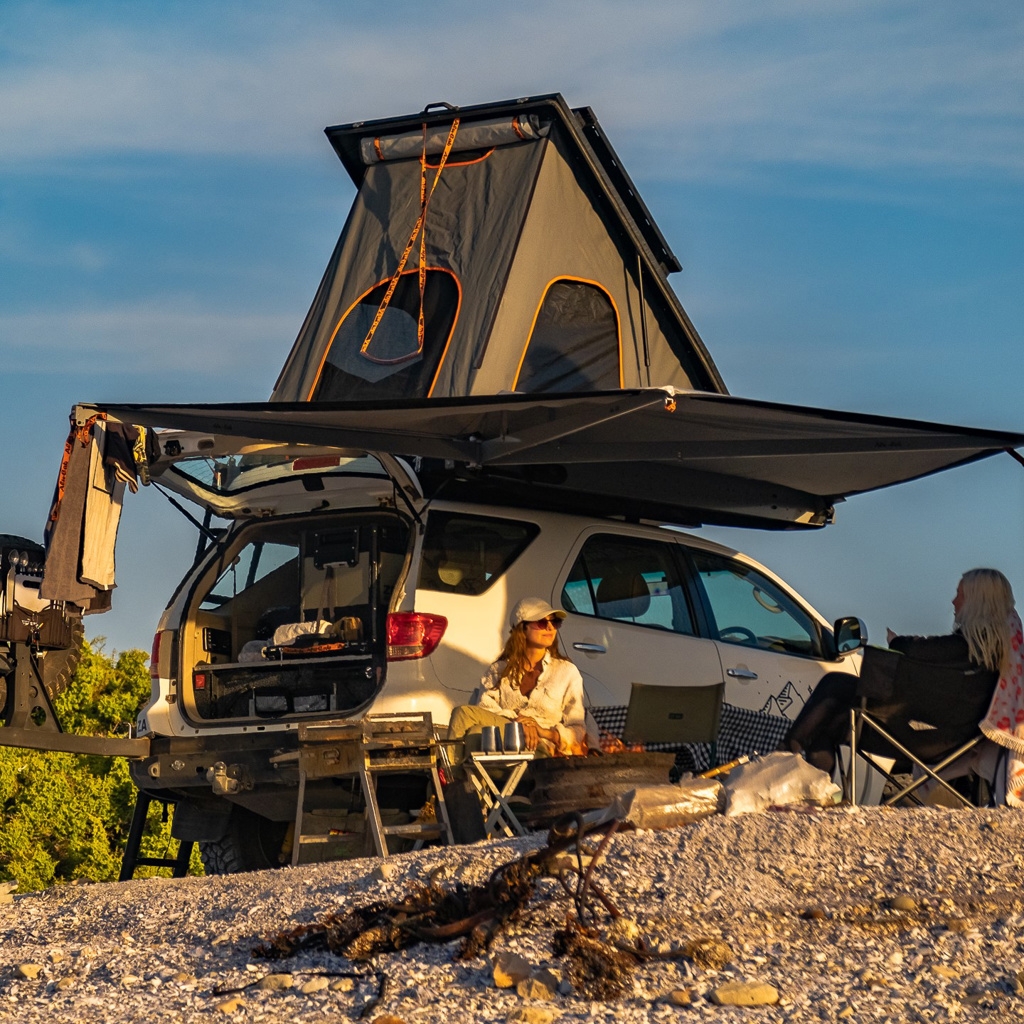 Auvent autoportant à 180° pour le côté droit du véhicule.