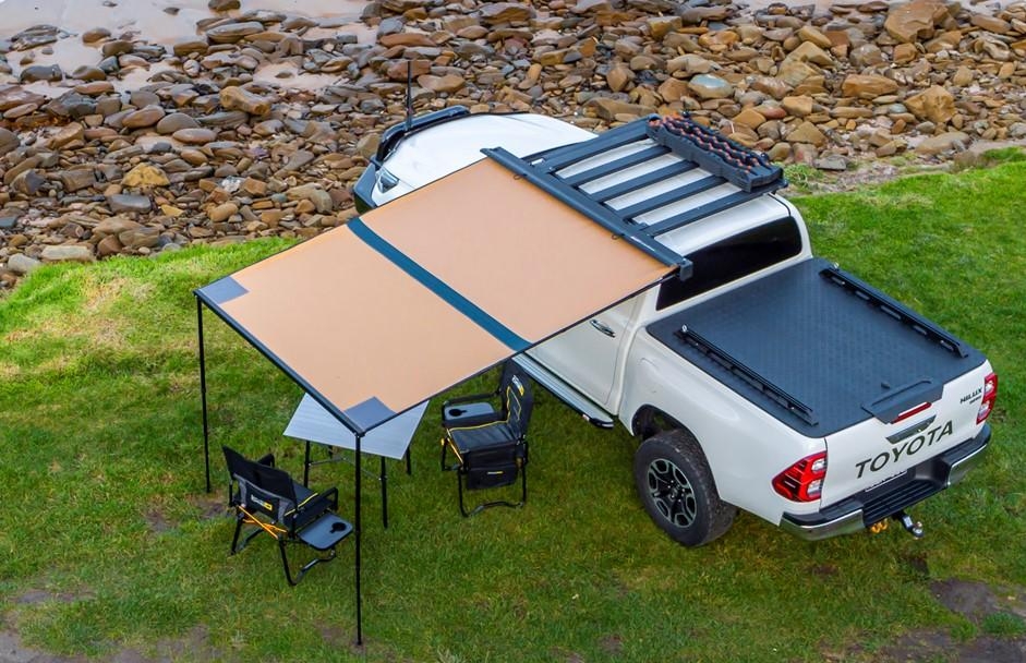 Facile à monter et d'utilisation agréable, cet auvent retractable s'installe sur le côté de la plupart des galeries ou barres de toit et s'enroule dans une coque rigide en aluminium.