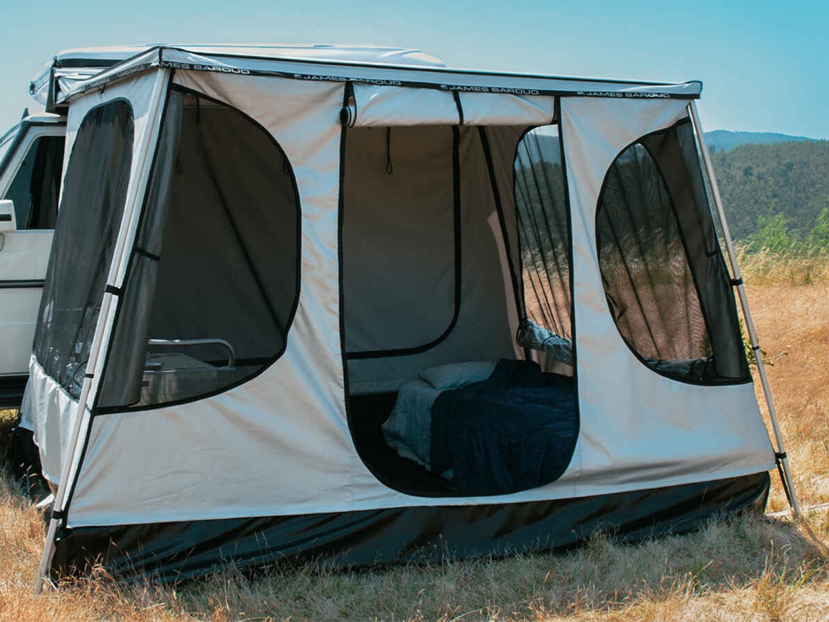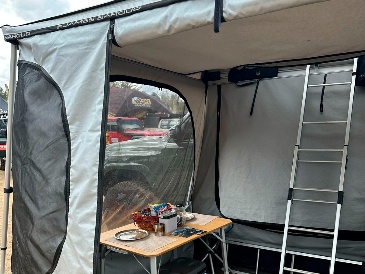 Pensée pour les voyageurs en famille, les campeurs tout-terrain et les baroudeurs exigeants, la Family Room James Baroud est bien plus qu'un simple accessoire : c'est une extension latérale complète qui transforme votre tente de toit ou votre véhicule en espace de vie abrité. Ce auvent avec pièce de vie vous permet de profiter d'un confort accru, d'une modularité exceptionnelle et d'un volume protégé idéal pour toute la famille.