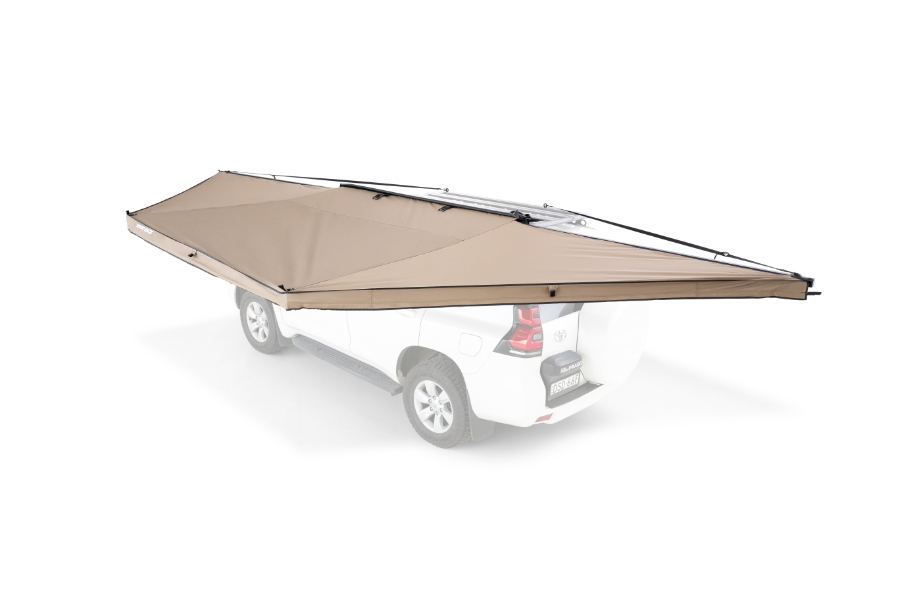 L'auvent autoportant Rhino-Rack Batwing 180° offre une couverture latérale de 8,4 m² grâce à sa longueur déployée de 220 cm, sans perçage grâce aux supports fournis. Conçu en Polycotton Ripstop 280 g/m² traité PU2000 mm et résistant aux moisissures tout en offrant une protection UV50+, il convient aussi bien au montage à droite qu'à gauche de votre rack de toit.