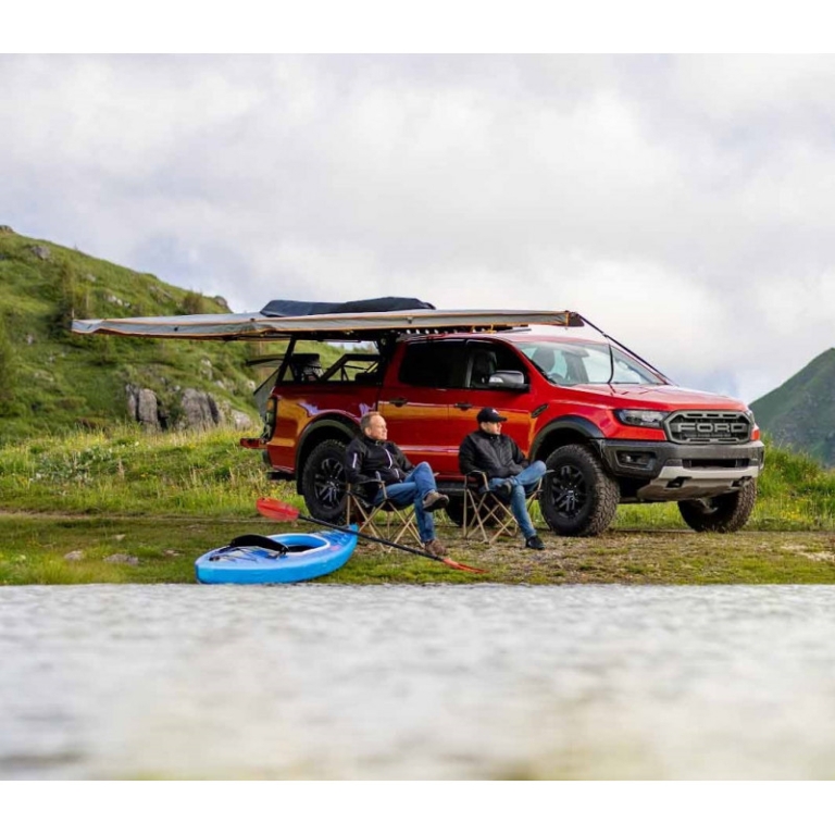 Découvrez l'auvent 450° Rockalu Gen 2 côté droit : déploiement rapide, structure robuste, protection intégrale. Parfait pour vos escapades tout-terrain.