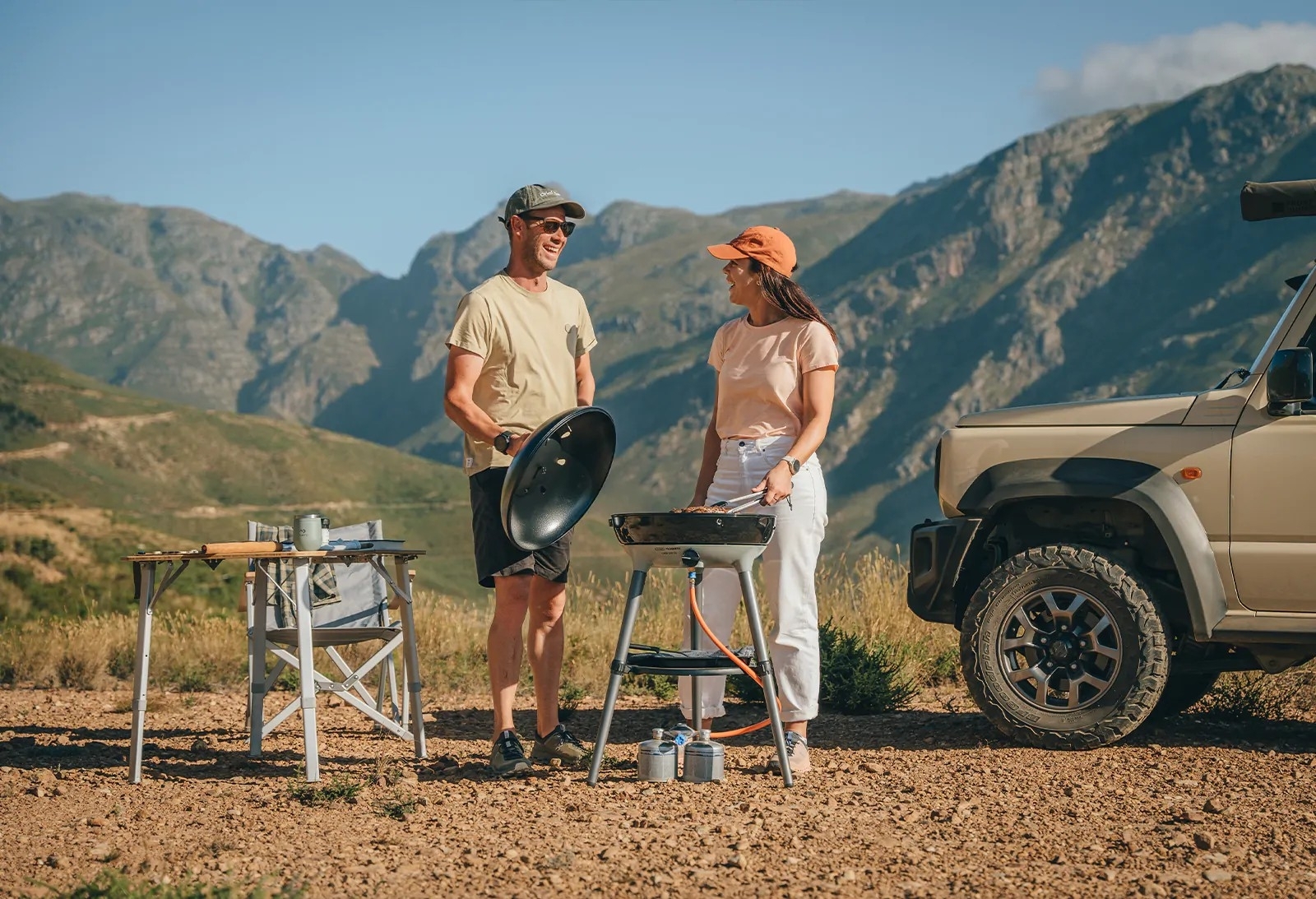 Couvercle multifonction : Grâce à son système d'accroche latérale, il fait office de pare-vent efficace, protégeant le brûleur des rafales et évitant les projections de graisse sur votre aménagement de coffre.