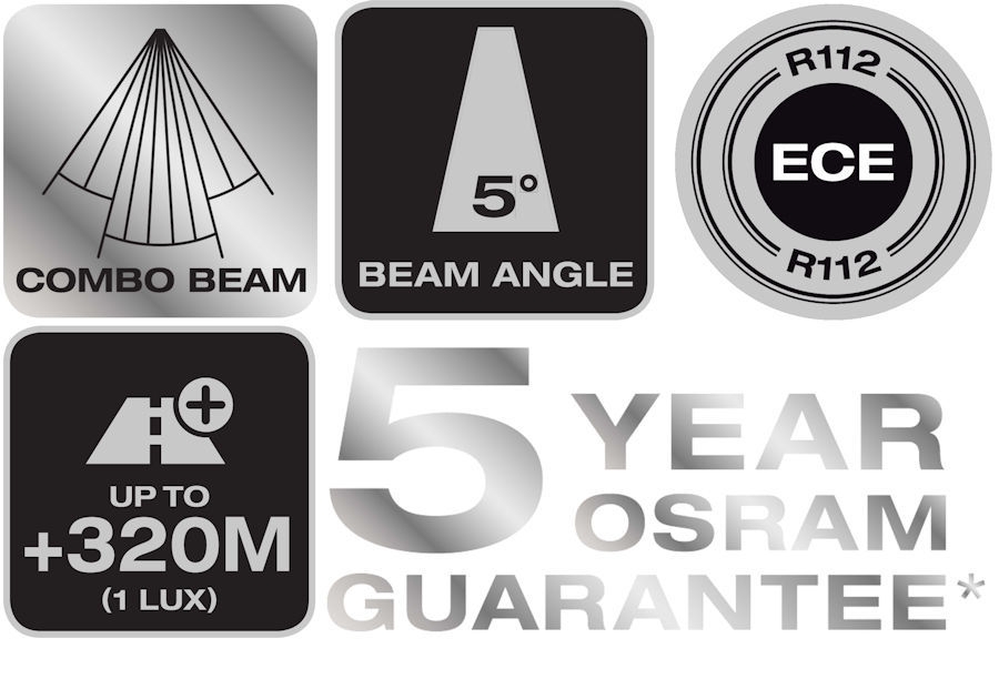 Les LEDriving Lightbar FX250-CB appartiennent à la série fonctionnelle et disposent d'un feu de route auxiliaire entièrement conforme à la norme ECE. OSRAM propose le produit en deux versions: Spot (SP) et Combo (CB). La configuration du faisceau combo montre un éclairage amélioré des champs lointain et rapproché, fournissant un faisceau lumineux allant jusqu'à 320 mètres .