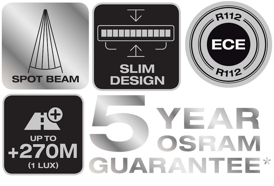 Grâce à leur lentille en polycarbonate extrêmement robuste, les lampes sont conçues pour des applications difficiles et disposent d'une protection contre les surtensions multiples. OSRAM offre une garantie de 5 ans sur le LEDriving LIGHTBAR SX180-SP.