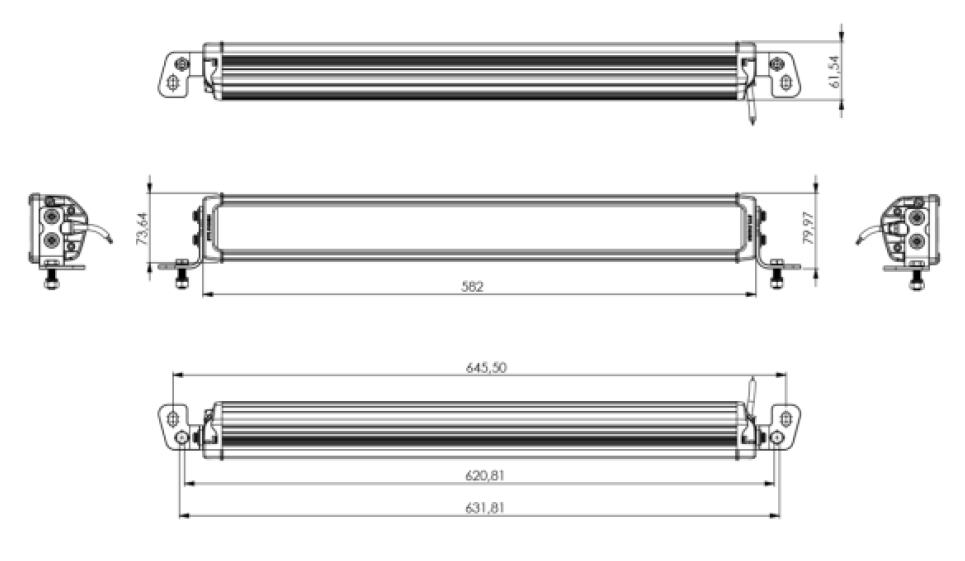 Hauteur 74,0 mm x Largeur 62,0 mm x Longueur 582,0 mm