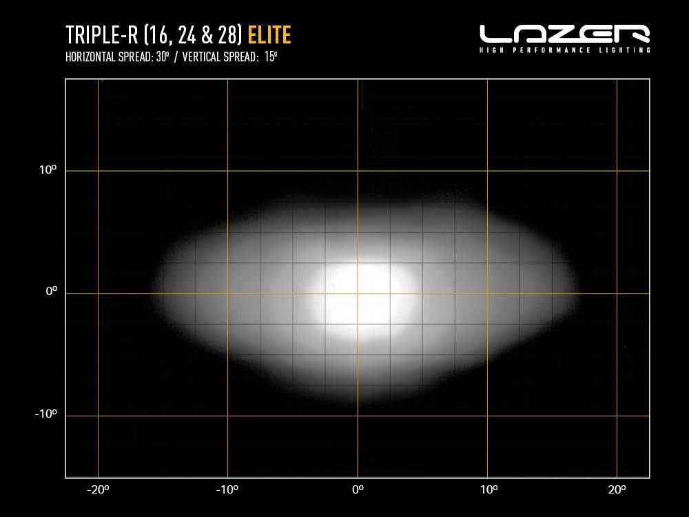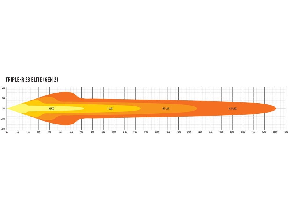 L'émission des projecteurs a été optimisée à une portée maximale en fonction des exigences du sport automobile de rallye et d'endurance, qui se déroule à des vitesses très élevées, au moyen de réflecteurs spécialement formés pour chaque LED. Alors que les lampes des séries ST et T éclairent également le bord de la route directement devant le véhicule, les lampes Triple-R sont optimisées pour la portée et n'atteignent l'éclairage latéral maximal qu'à partir d'environ la moitié de la portée. Par rapport à l'émission de lumière hybride des séries ST et T, la valeur de luminosité est jusqu'à cinq fois plus élevée au sommet.