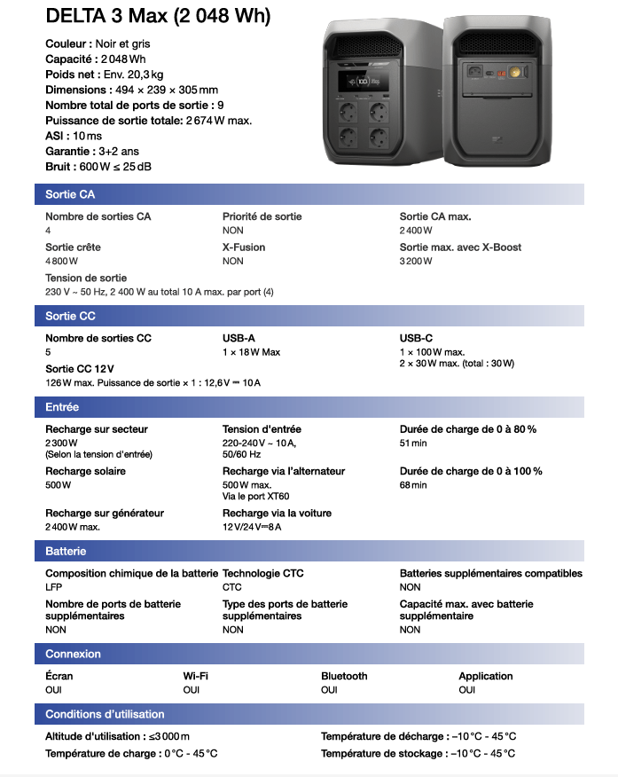 Station d'énergie portable EcoFlow DELTA 3 Max 2048Wh : L'autonomie électrique haute performance