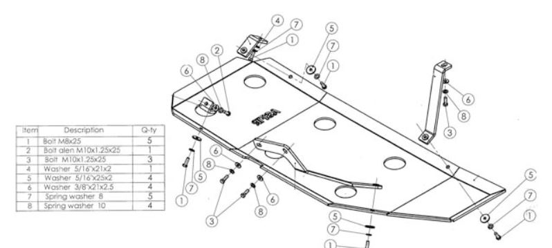 Les blindages Asfir sont en aluminium de qualité (6mm) et se fixent sur les points d'origine du véhicule, ils sont livrés avec des pattes de fixation en acier 4mm et la boulonnerie ; aucunperçage n'est à prévoir pour leur installation.
