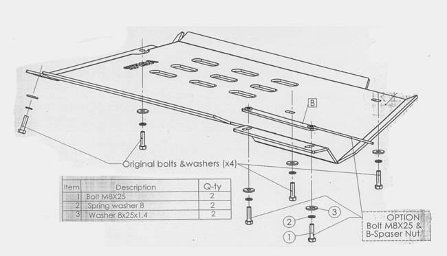 Les blindages Asfir sont en aluminium de qualité (6mm) et se fixent sur les points d'origine du véhicule, ils sont livrés avec des pattes de fixation en acier 4mm et la boulonnerie ; aucunperçage n'est à prévoir pour leur installation.