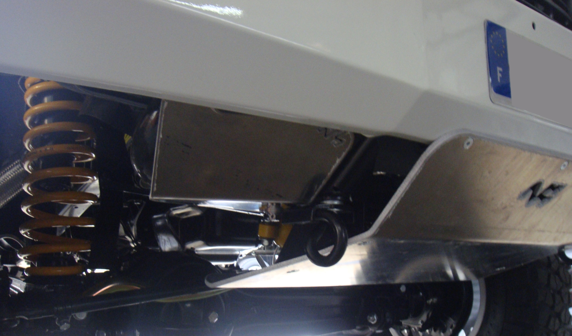 Protection des tubulures d'intercooler frontal (option rajoutée au véhicule) en aluminium 5mm. Kit complet comprenant : tôle de protection, nécessaire de montage, visserie, notice