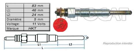 BOUGIE de PRECHAUFFAGE 11 volts HKT