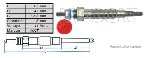 BOUGIE de PRECHAUFFAGE 11 volts HKT